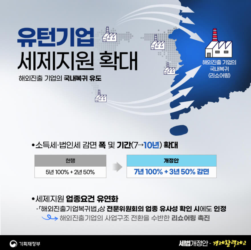 해외진출 기업의 국내복귀 유도(리쇼어링)를 위한 세제 지원이 강화됩니다.