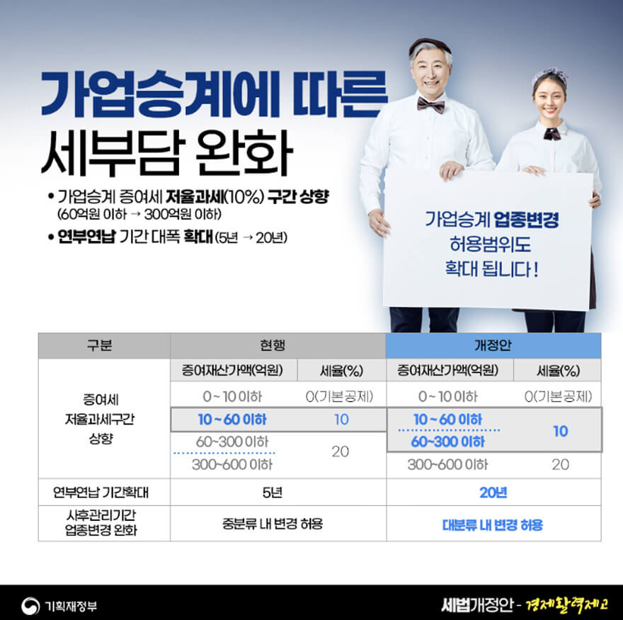 ⓐ 가업승계 증여세 저율과세(10%) 구간 상향 (60억 원 이하 -> 300억 원 이하)